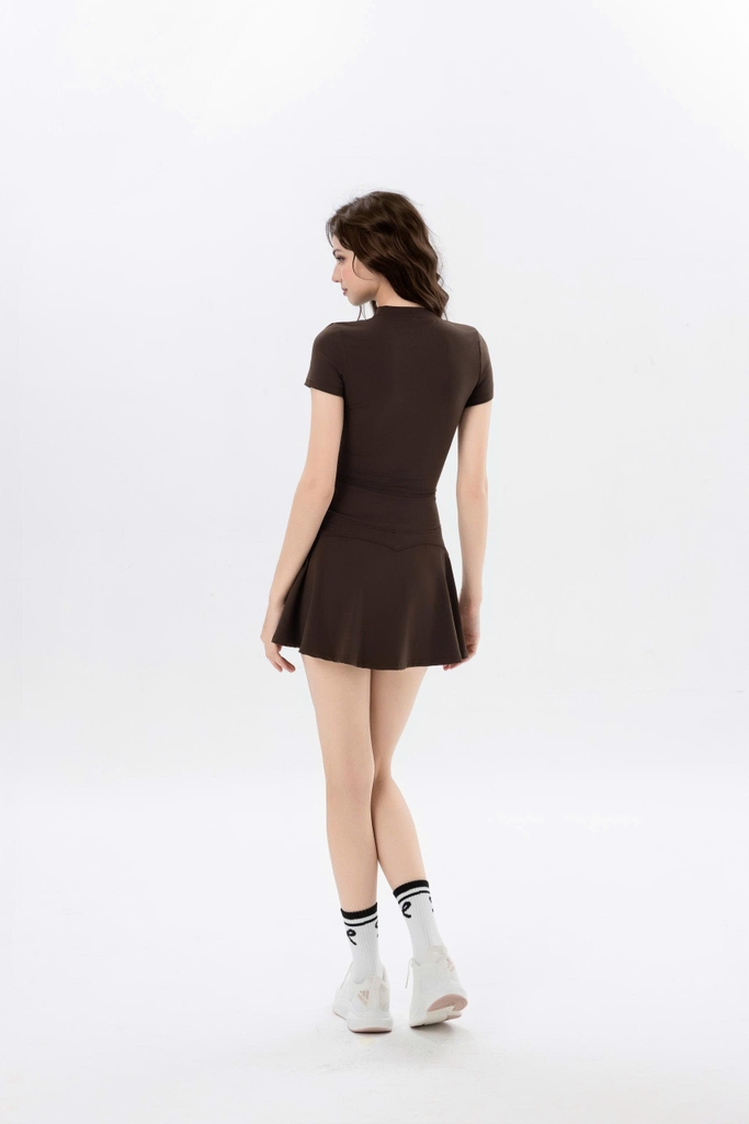 Thiết kế : Áo thun ôm nhẹ nhàng kết hợp chân váy xòe, kèm shorts bên trong giúp tự tin vận động.
