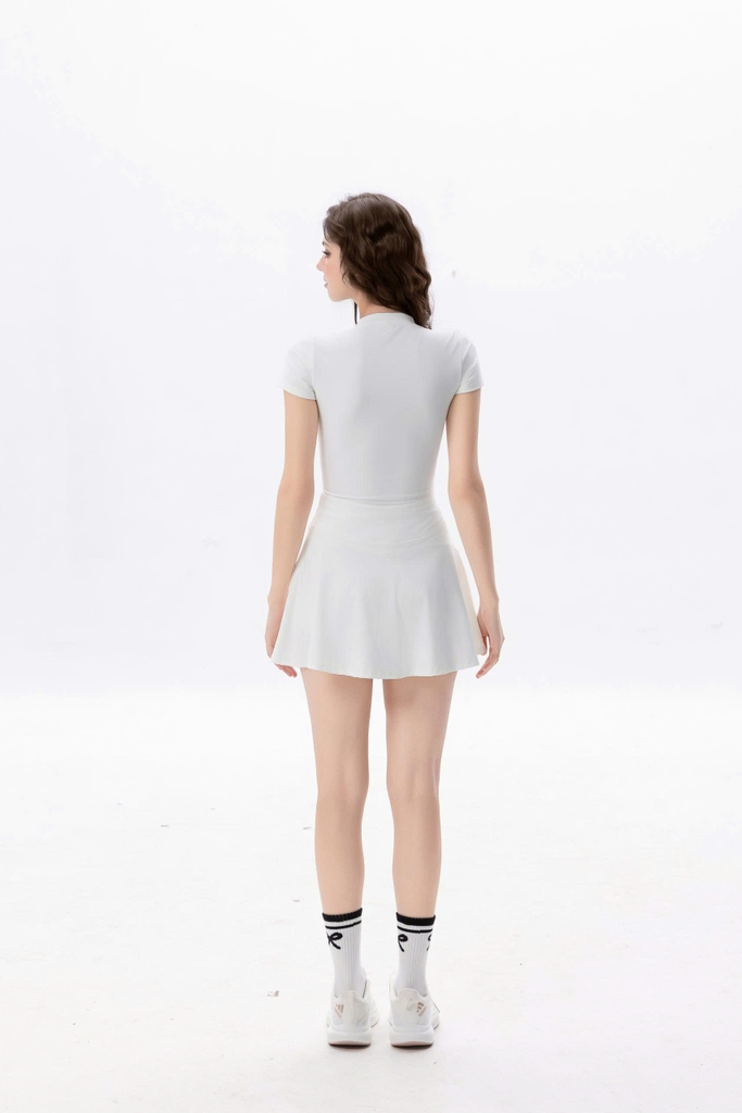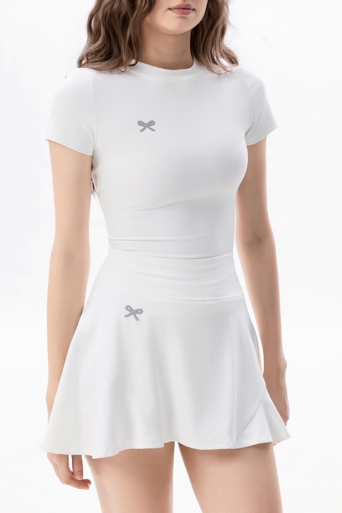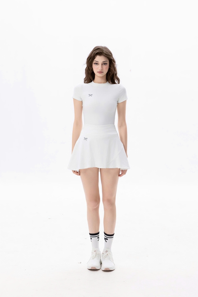 Thiết kế : Áo thun ôm nhẹ nhàng kết hợp chân váy xòe, kèm shorts bên trong giúp tự tin vận động.
